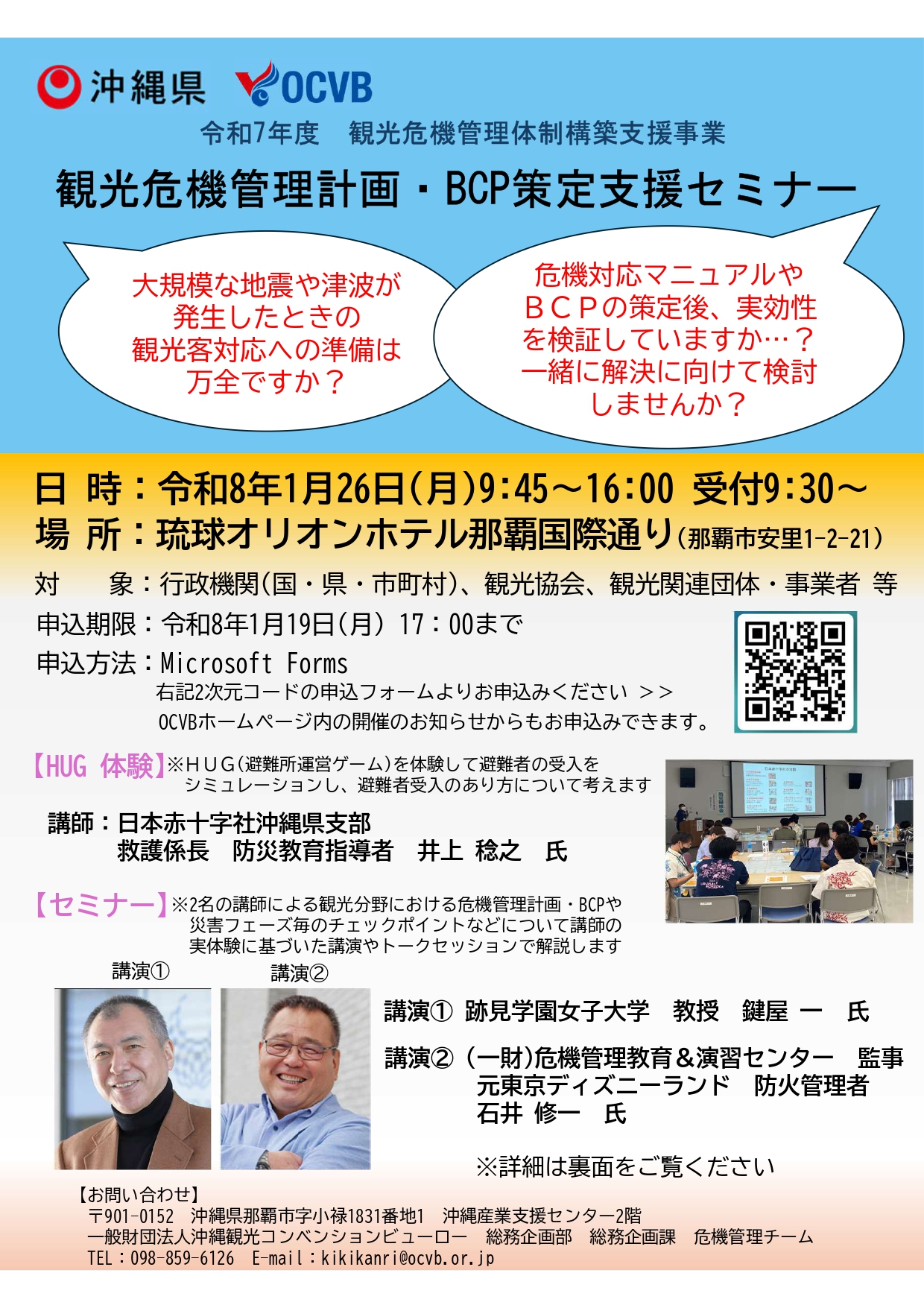 - OCVBより「令和7年度観光危機管理計画・BCP策定支援セミナー」の開催案内